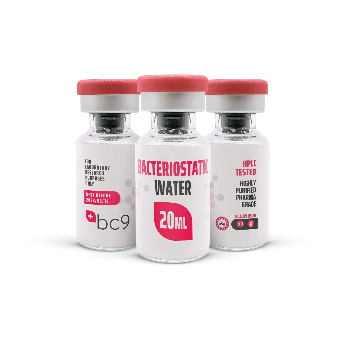 Bacteriostatic water is a sterile aqueous solution containing 0.9% benzyl alcohol, incorporated as a preservative system to inhibit microbial proliferation in controlled environments. It serves as a foundational solvent system in laboratory workflows where solution stability and repeated access are required.
