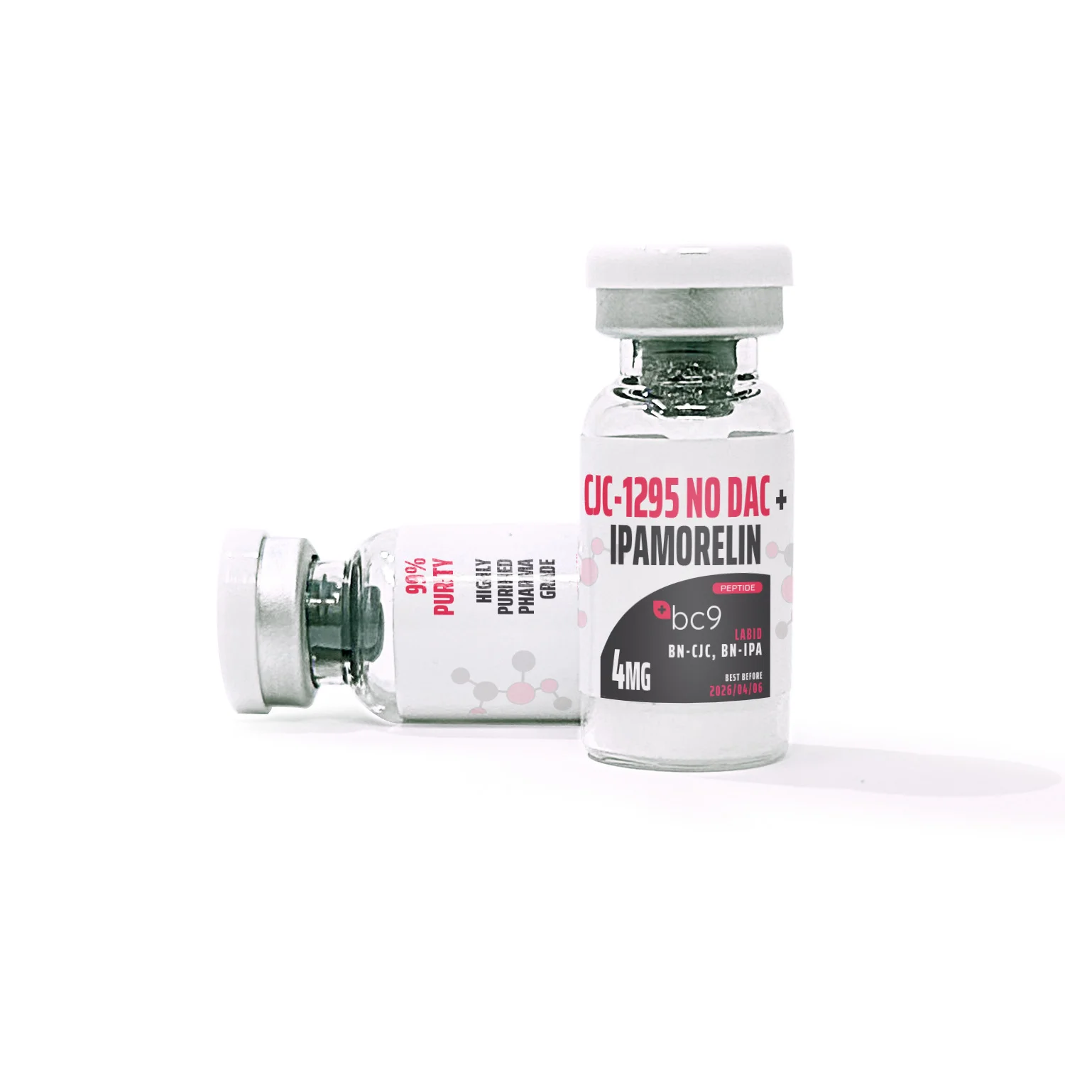 The 4mg Blend contains 2 mg of CJC-1295 No DAC and 2 mg of Ipamorelin, totaling 4 mg.