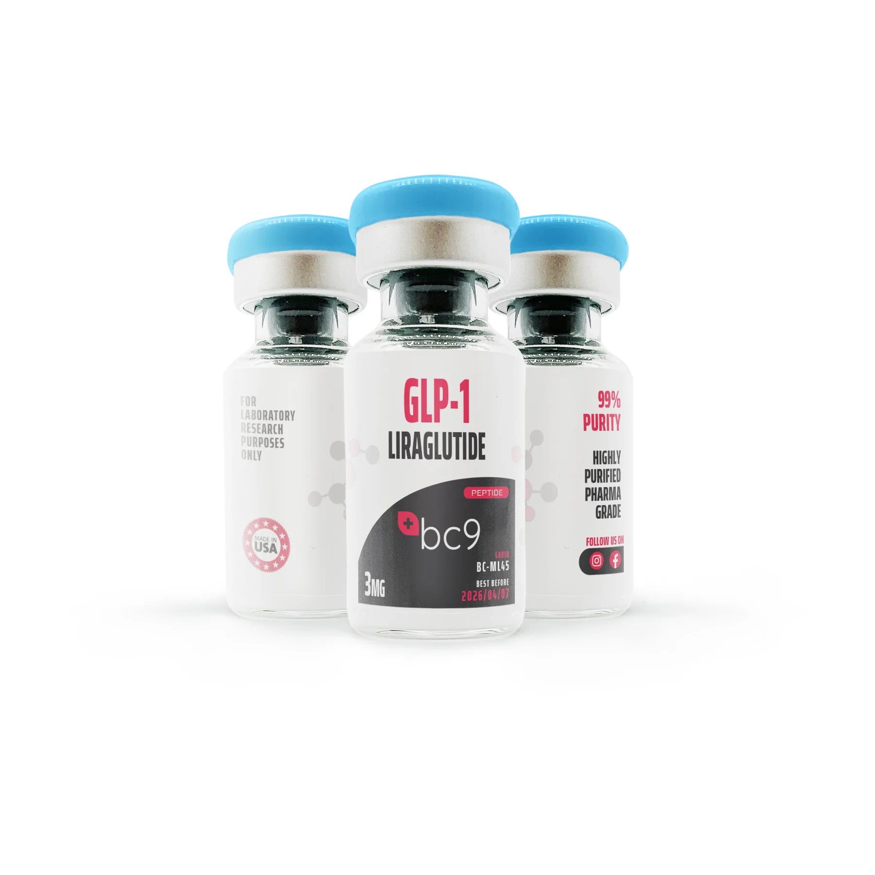 In conclusion, GLP-1 (Liraglutide) Vials are a specialized research tool designed to facilitate scientific inquiry into the multifaceted benefits of Liraglutide. From addressing obesity-related concerns to investigating its impact on Type-2 Diabetes and potential associations with bone health, researchers can leverage these vials to contribute to the growing body of knowledge in these critical areas. This product is strictly for research purposes and not for human consumption.