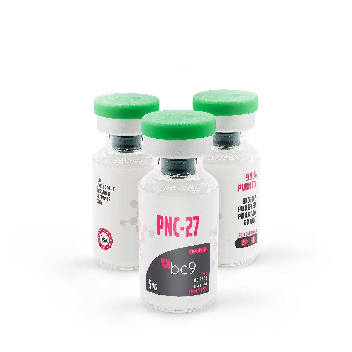 PNC-27 Vials contain a specific peptide sequence, PNC-27, known for its unique molecular structure. This peptide is synthetically derived and undergoes stringent quality control measures to ensure purity and consistency in research settings.