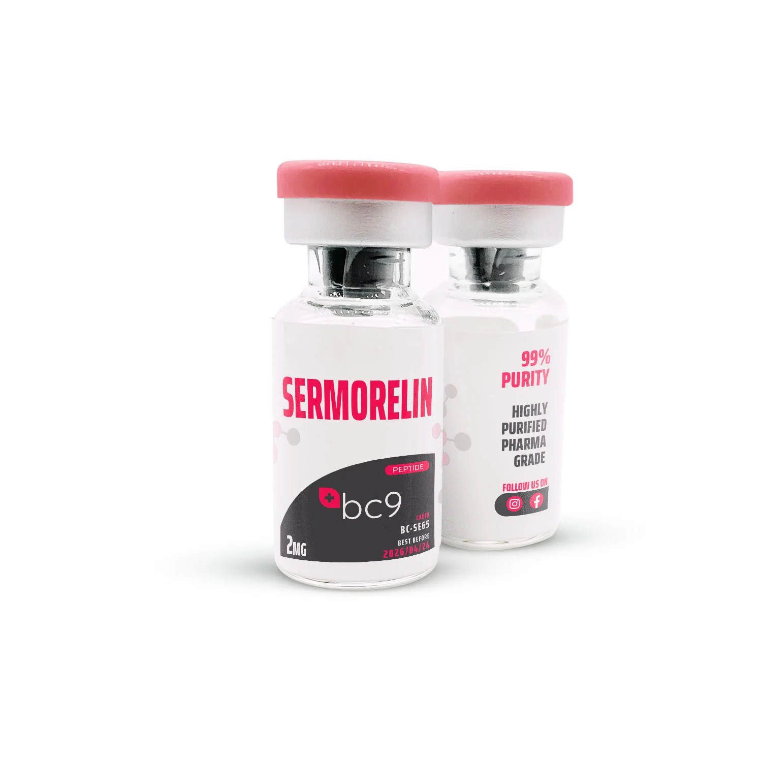 BC9 offers sermorelin for sale in a sterile, lyophilized powder form. Each batch is rigorously tested via HPLC and mass spectrometry. This practice leads to high purity and reliability of our research products.